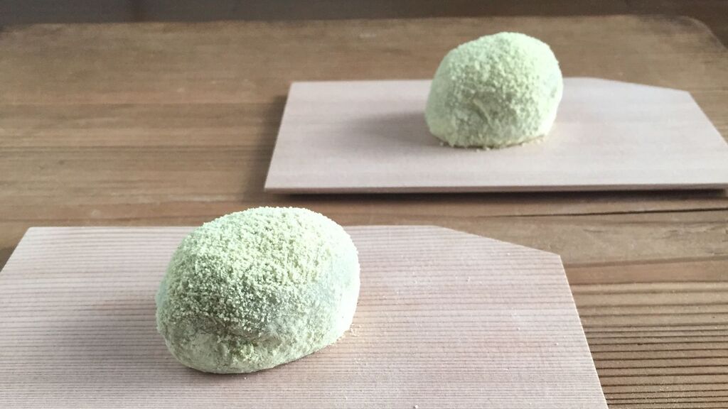うぐいす餅は水あめ入りのなめらかな柔らかい求肥で漉し餡を包み、