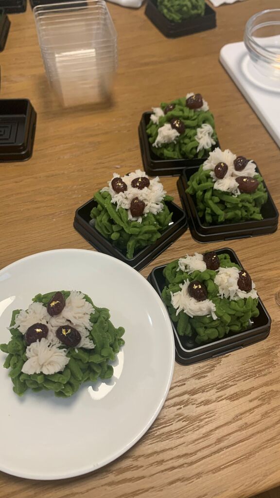 今月はお正月に向けおめでたく梅と松の和菓子を作りました。