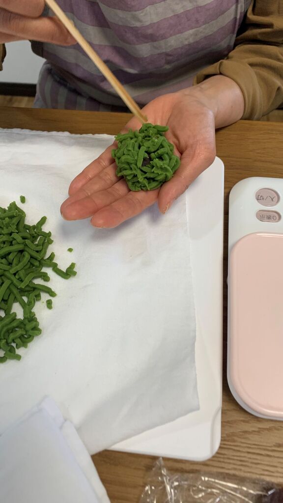 いつもなら一つは簡単な和菓子にするのですが、今回はどちらも細工をする難易度の高い和菓子でしたが、皆さんとても上手に作られていましたね。すごい!