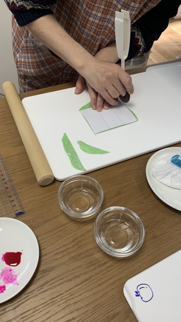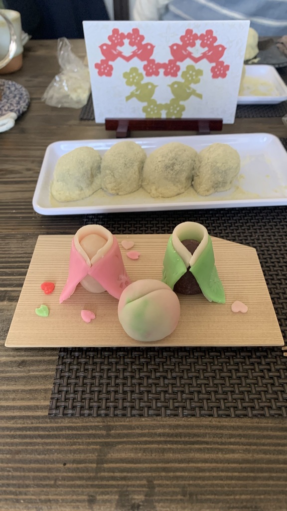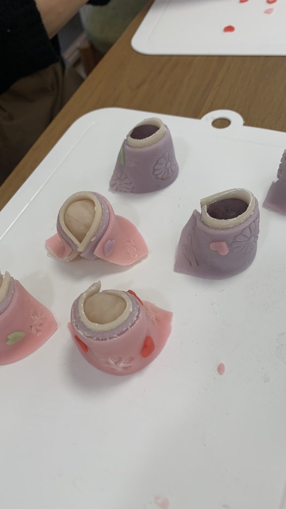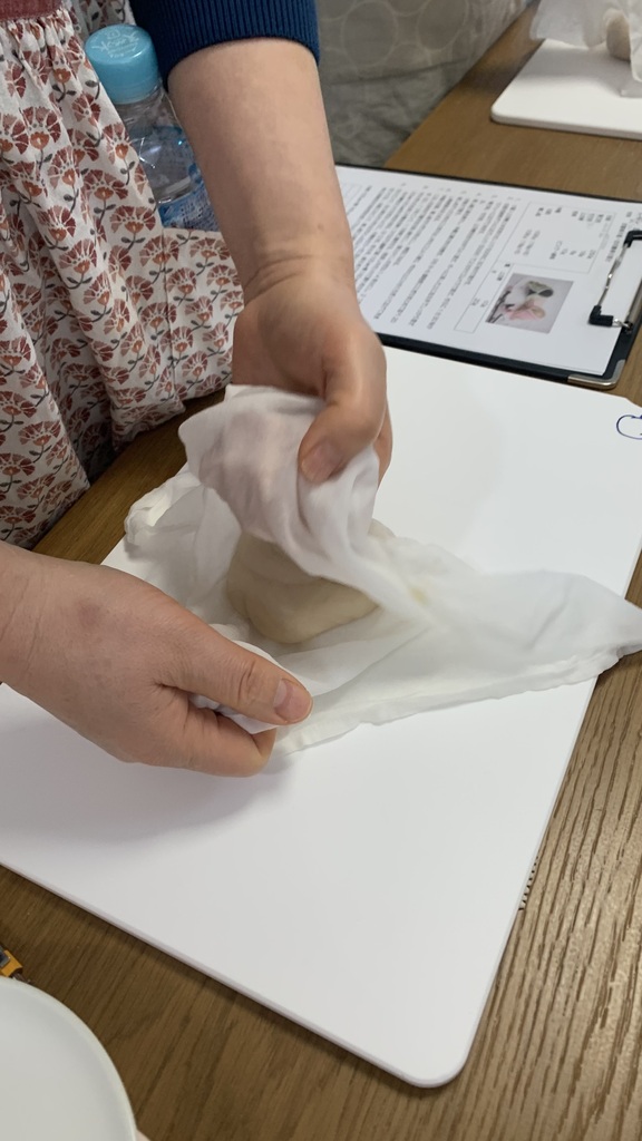 こなしという、もっちりした生地でお雛様を作っていきます。細工物は細かい作業が多いうえに、色で悩んだり飾りつけで悩んだりするので時間がかかりますよね。皆さん一生懸命作業してくださってました。静かな時間と時々ため息も(笑)そして最後に「かわいい~楽しかった~」と(笑)