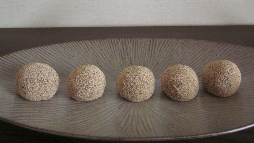 芥子餅は、漉し餡をお餅で包んで芥子の実をまぶした和菓子です。